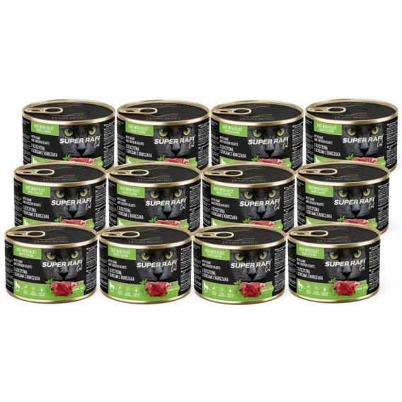 Mokra karma dla kotów Super Rafi 12x185g z dziczyzną i sercami z kurczaka